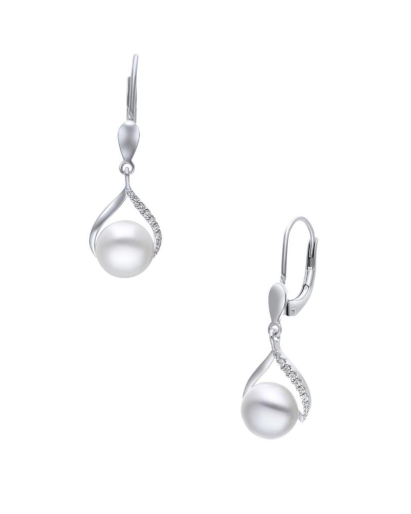 Moda y accesoriosJoyeríaAretesAretes De Oro Blanco 14K Con Zirconias Y Perla