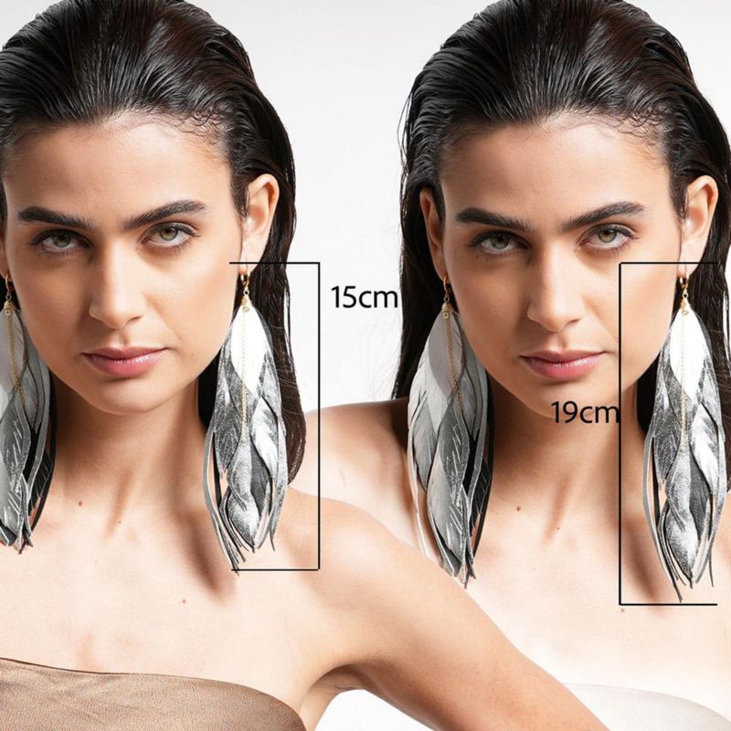 Moda y accesoriosJoyeríaAretesVangania aretes largos mujer con pluma artesanal, cadena dorada y perla mayorca