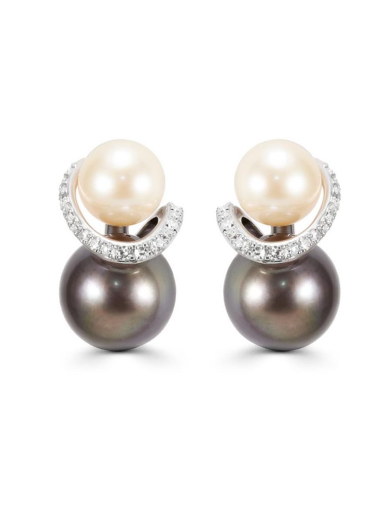 Aretes Oro Blanco 14K con 11 Pts Diamante y Perla ASP-788-A