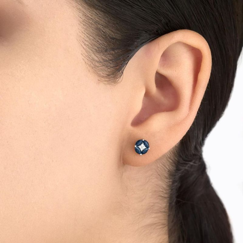 Aretes Oro Blanco 14k Con Diamante Y Zafiro CRISTAL JOYAS INTKE0512586S