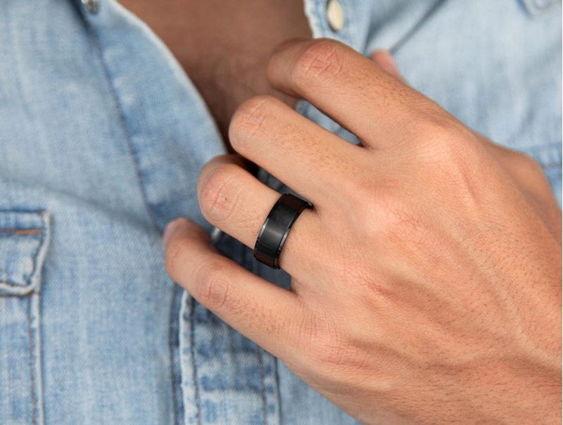 Argolla Viggo para hombre en color negro de acero inoxidable talla 9.