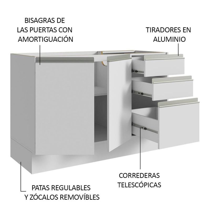 MueblesMuebles de BañoGabinetesArmario Baño 120cm Madesa 2 Puertas y 3 Cajones Blanco