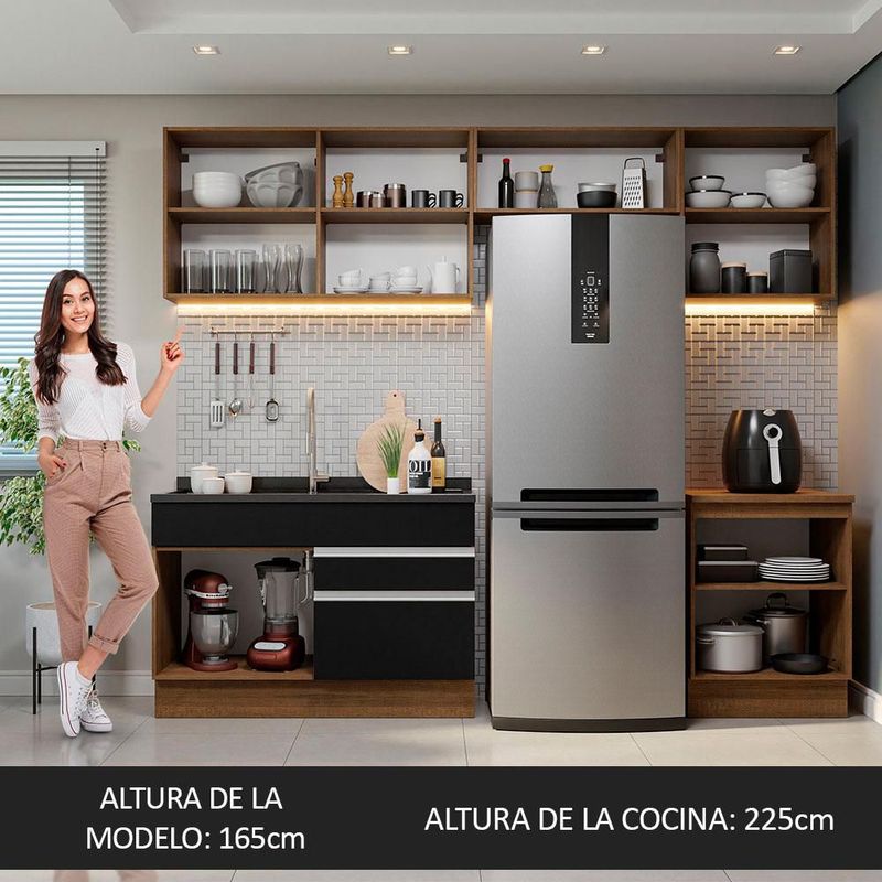 MueblesMuebles de cocinaCocinas IntegralesArmario de Cocina Completo Glamy Madesa Marrón y Negro