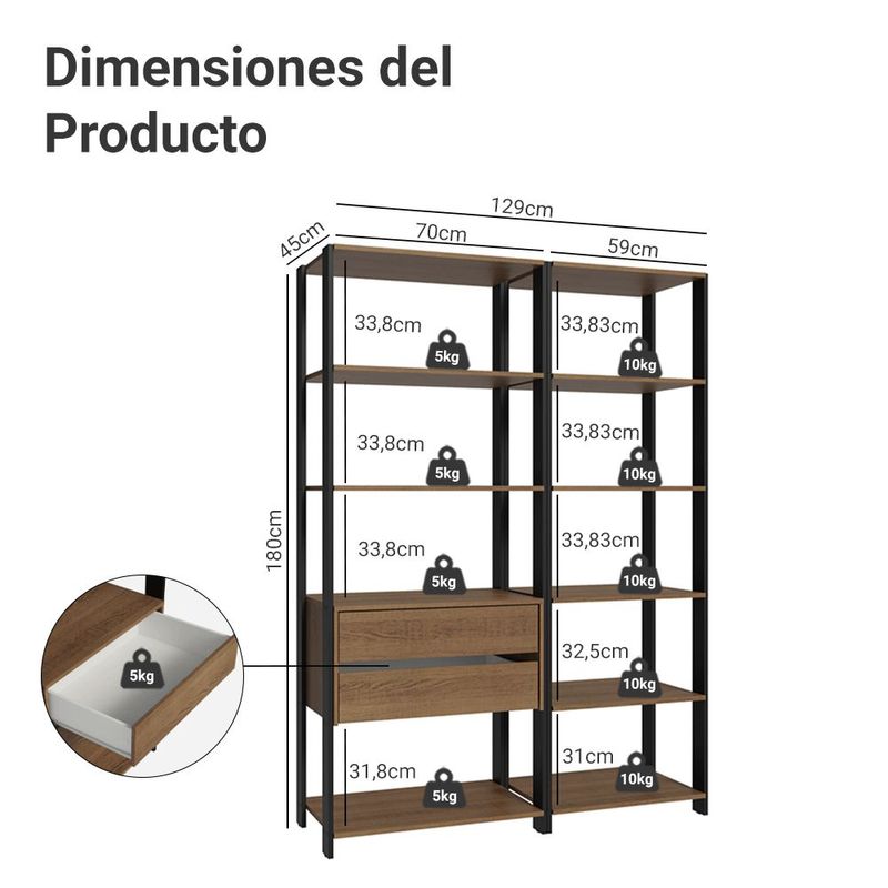Armario Organizador Multiuso Cocina 129cm Marrón/Negro Madesa