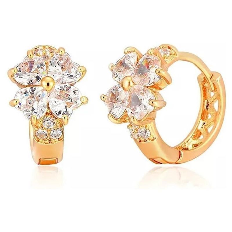 Moda y accesoriosJoyeríaAretesArracadas Huggies Flor Cristales Para Niña Oro Laminado Blanco
