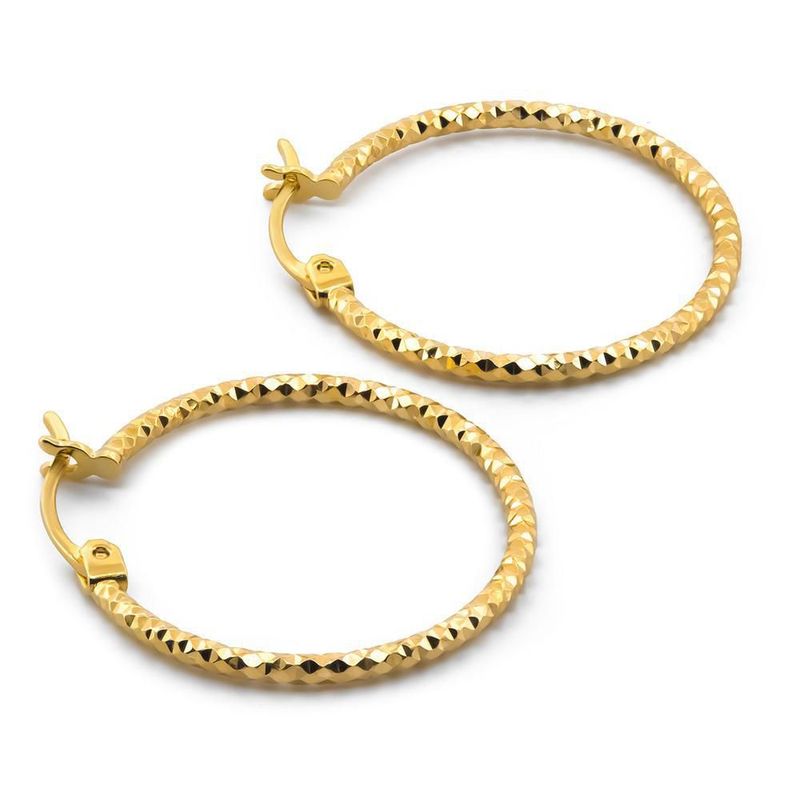Arracadas redondas puntos facetadas 2.3 cm oro sólido 10k