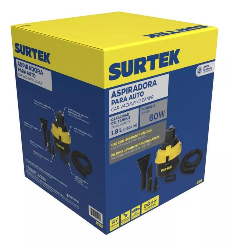 AutomotrizAutomotrizArtículos de LimpiezaAspiradora Portátil Para Automóvil 1800 Ml 12v Asp41 Surtek