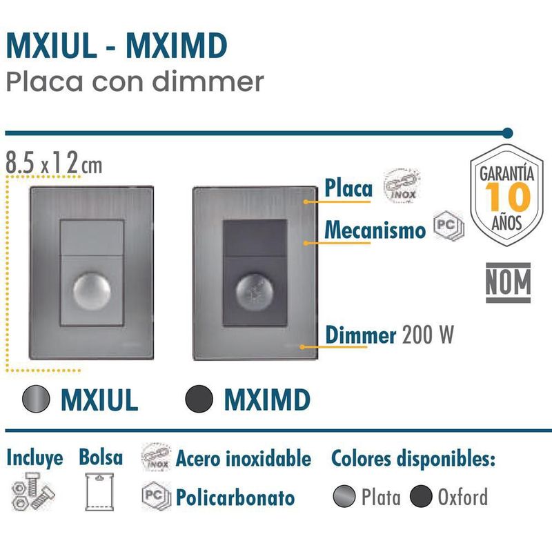 HerramientasMaterial EléctricoApagadores y ContactosAtenuador de Pared con Placa MXIUL-001 Inoxium1DSilver Atenuador de Luces