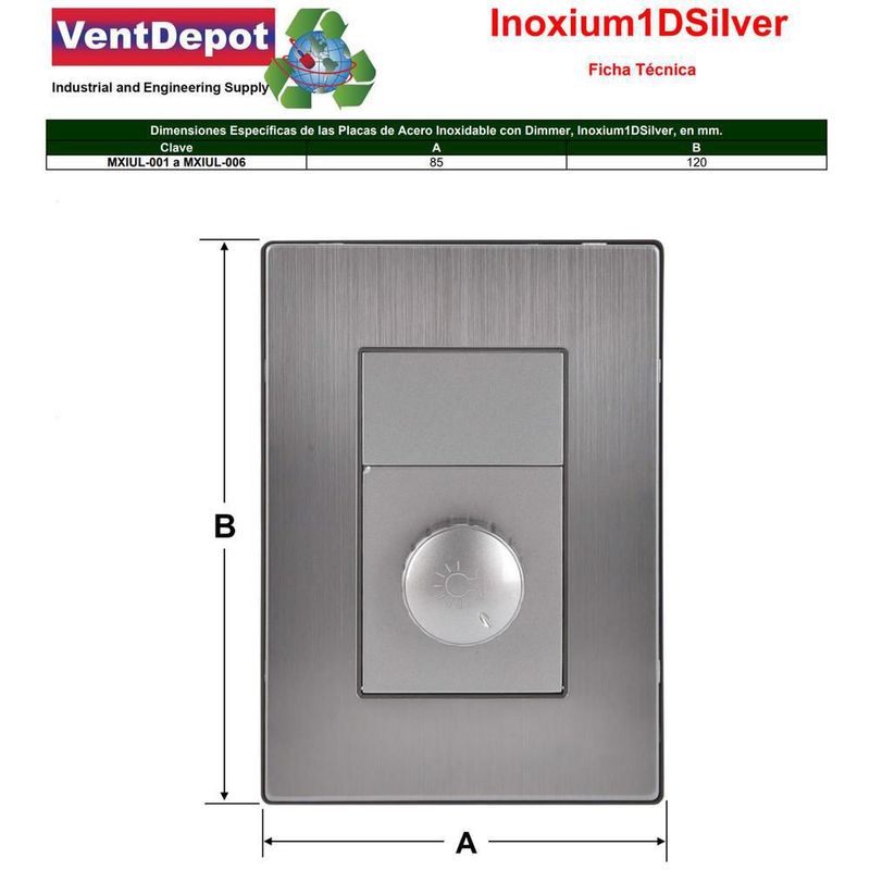 Atenuador de Pared con Placa MXIUL-001 Inoxium1DSilver Atenuador de Luces