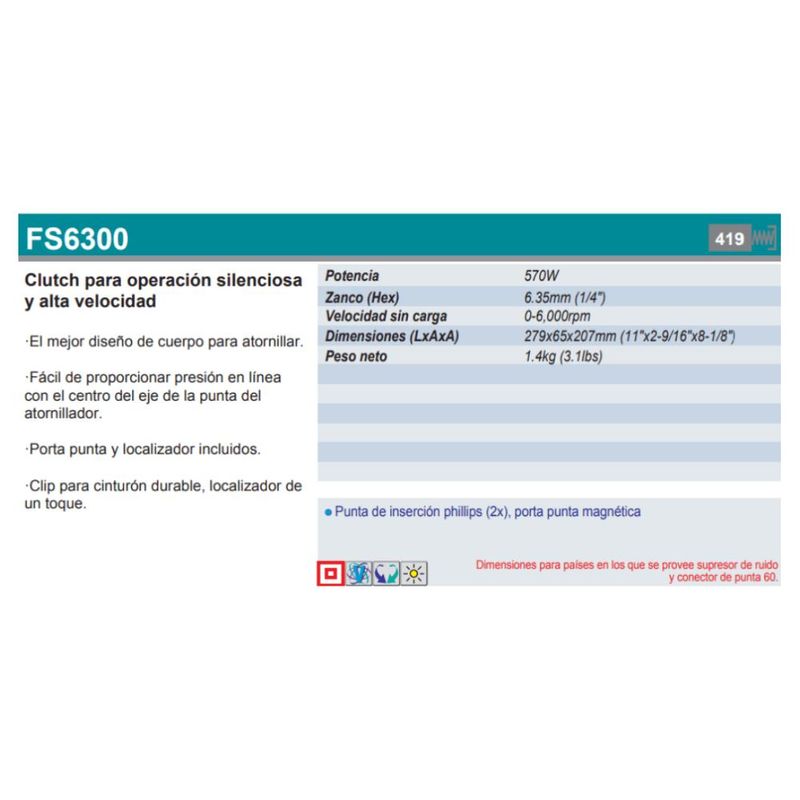 HerramientasEléctricasRotomartillos, Taladros y DestornilladoresATORNILLADOR PARA TABLAROCA 570W VVR FS6300 MAKITA