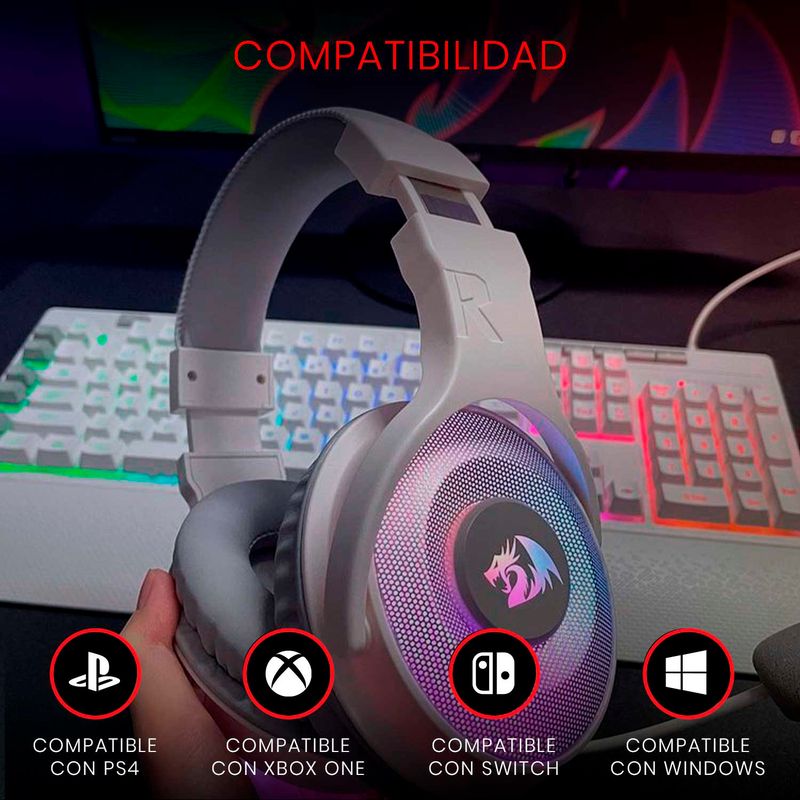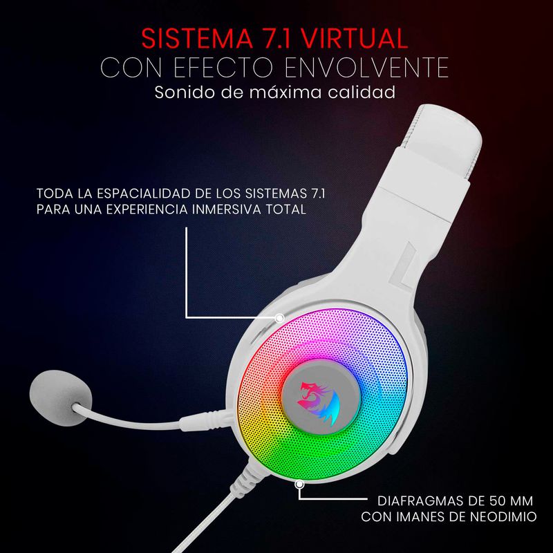 CómputoAccesorios y periféricosAudífonos y MicrófonosAudífono Gamer Redragon Pandora Blanco RGB Audio 7.1 por USB