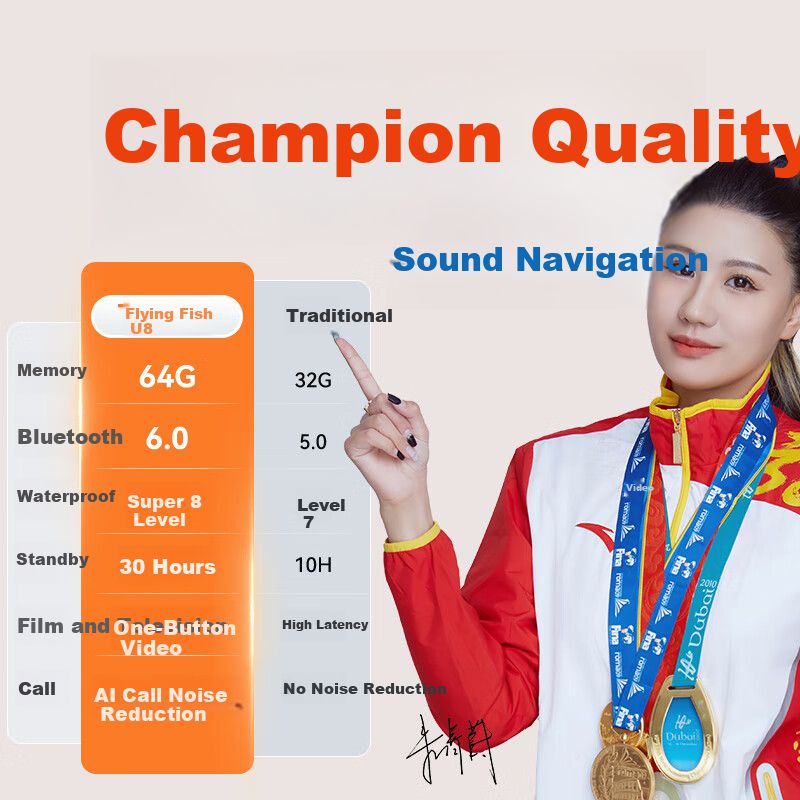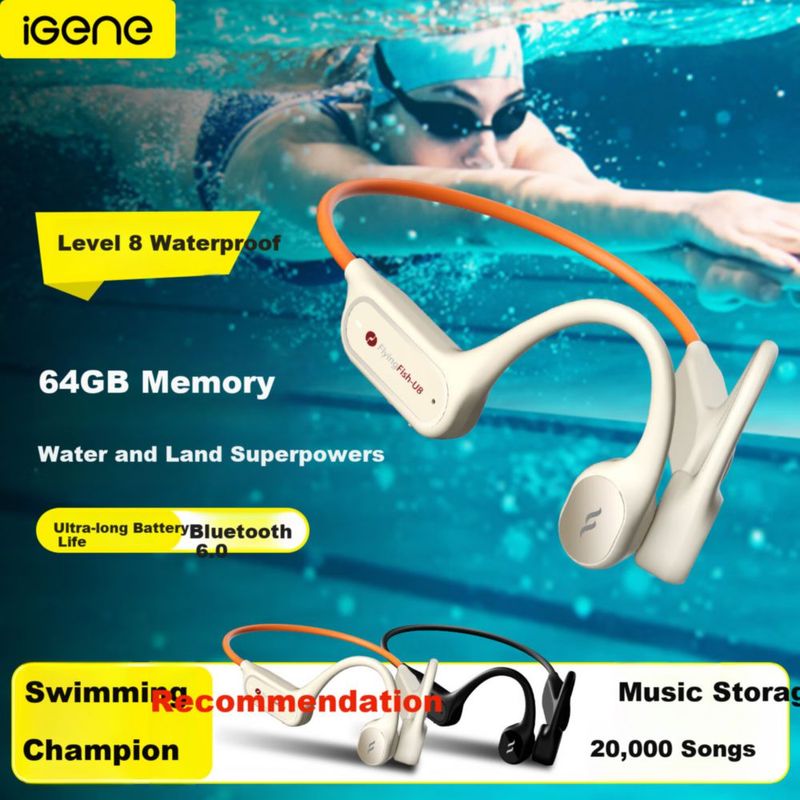 TelefoníaAccesorios para celularesAudífonos y Manos LibresAudífonos conducción ósea iGene Flying Fish U8 64GB IPX8 Bluetooth 6.0