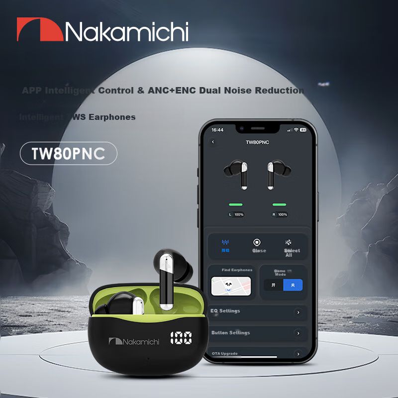 ElectrónicaAudio y equipos de sonidoAudífonosAudífonos Nakamichi TW80PNC Inalámbricos negros antipérdida cancelación de ruido
