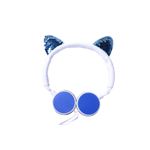 AUDIFONOS STEREO GATO LENTEJUELA AZUL CON MICROFONO