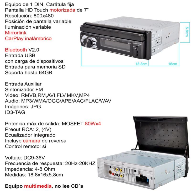 Autoestereo Vak 1703 Motorizado 7 mp5 Bluetooth Usb Mirrorlink SD