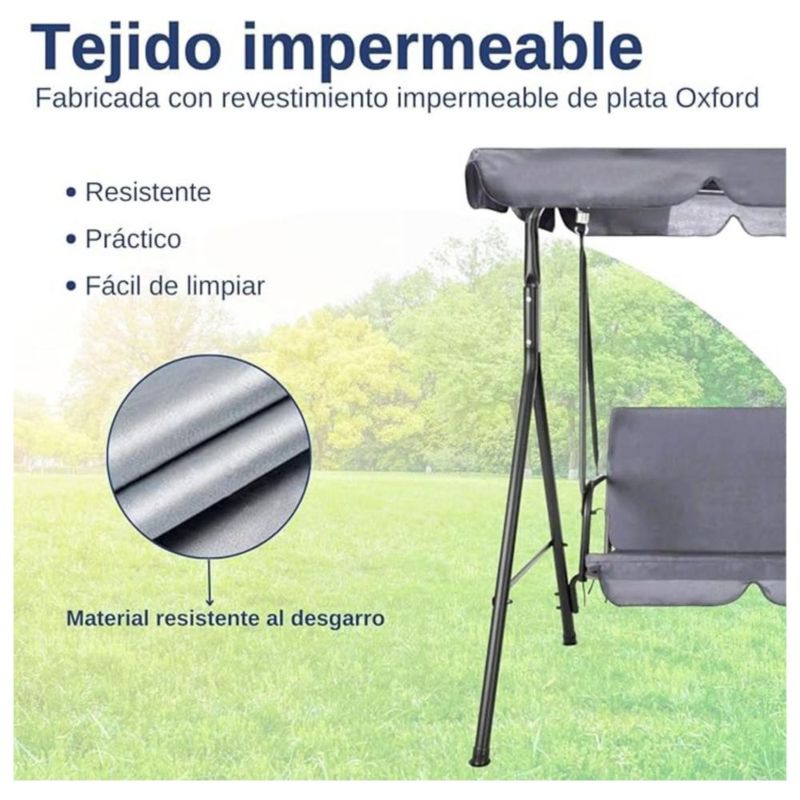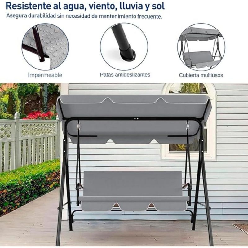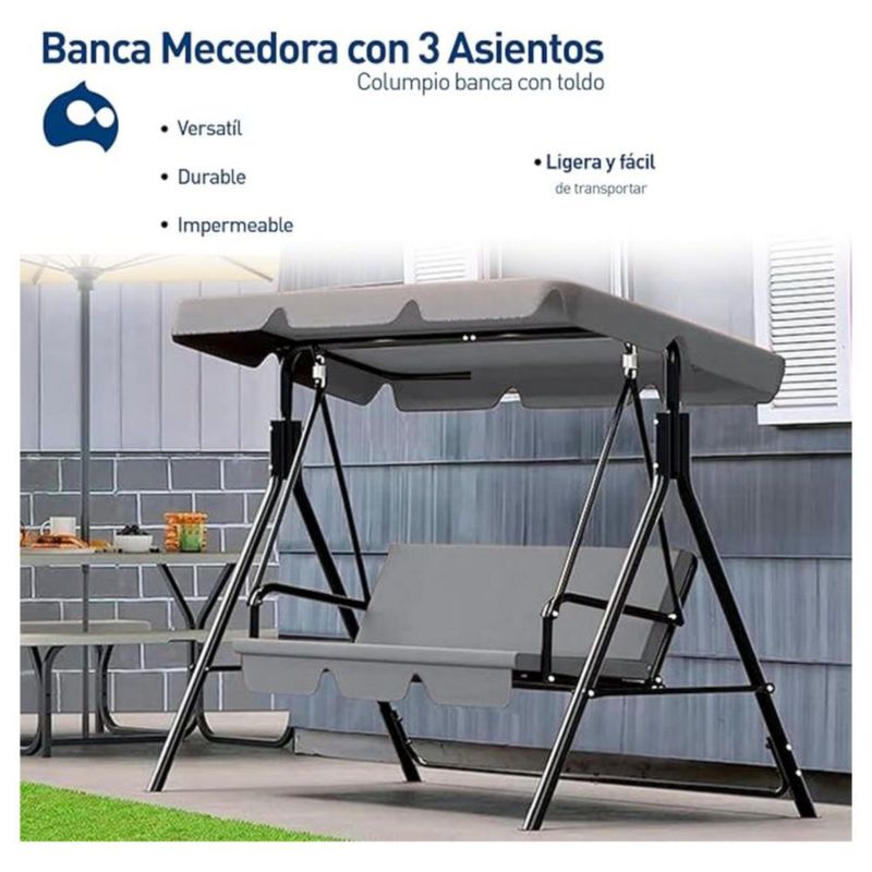 Banca Mecedora Bluelander de 3 Asientos, 240 kg, Toldo Ajustable, Gris