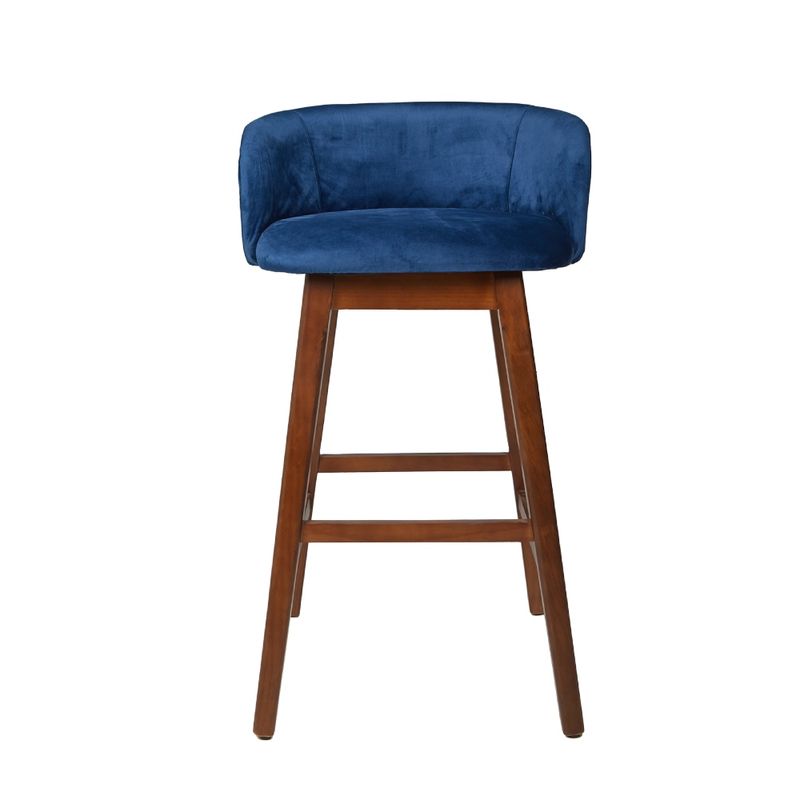Banco Alto con Asiento Tapizado en Terciopelo Azul. Estructura de Madera.