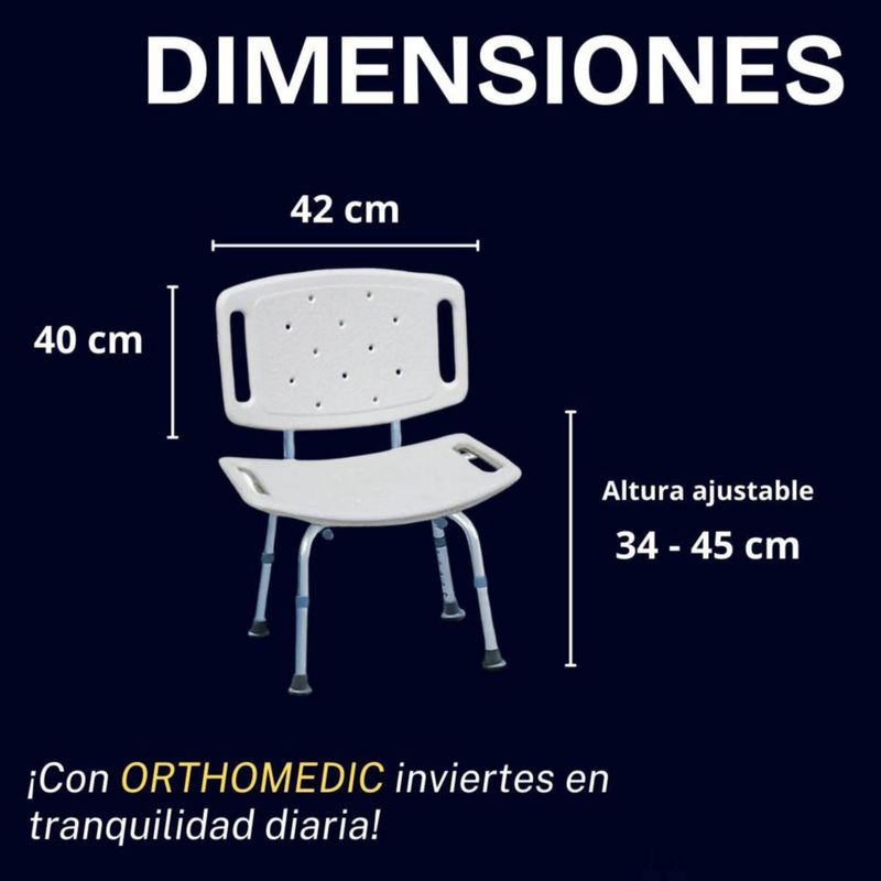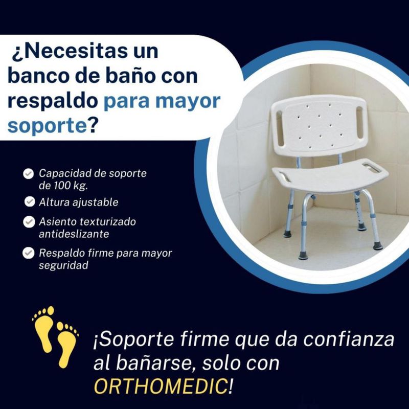 ORTHOMEDIC BANCO DE BAÑO CON RESPALDO – ANTIDESLIZANTE, ERGONÓMICO Y AJUSTABLE