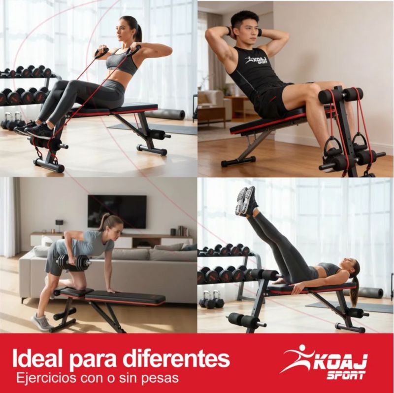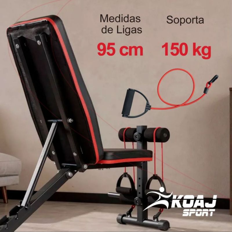 Banco Gym Ejercicio Ajustable Ligas Resistencia Plegable Negro