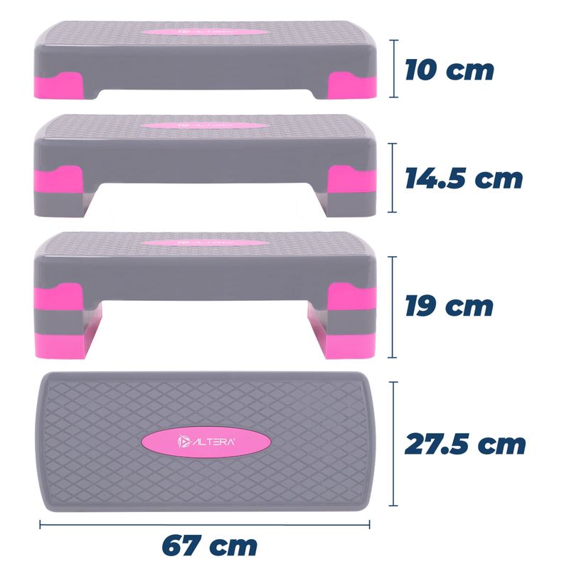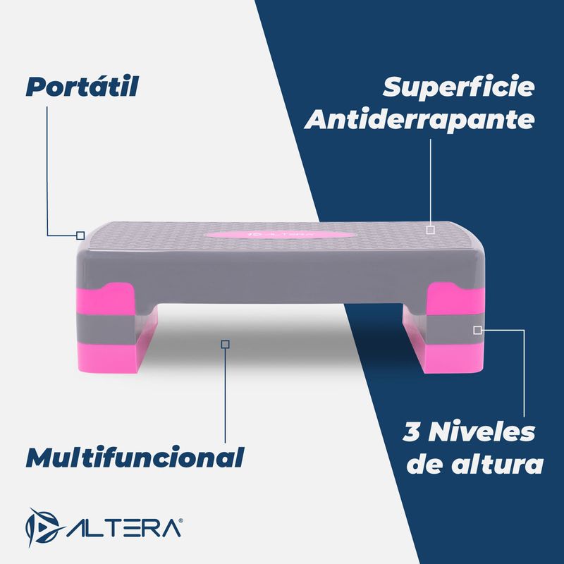 Banco Step Altera Ejercicio Fitness Gym Ajustable 3 Alturas Gris/Rosa