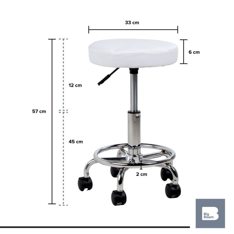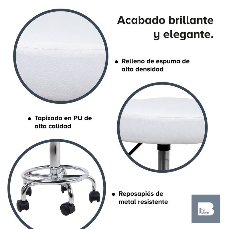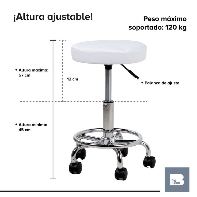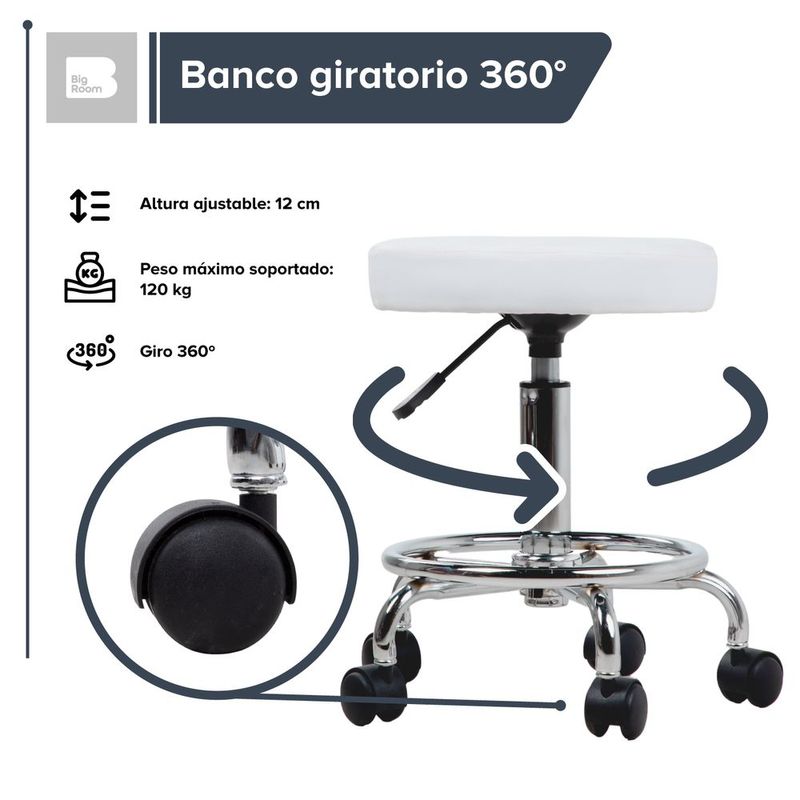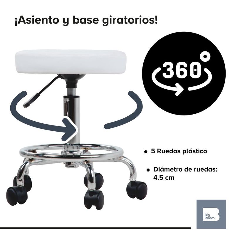 Banco taburete giratorio neumatico con ruedas reposapies spa blanco