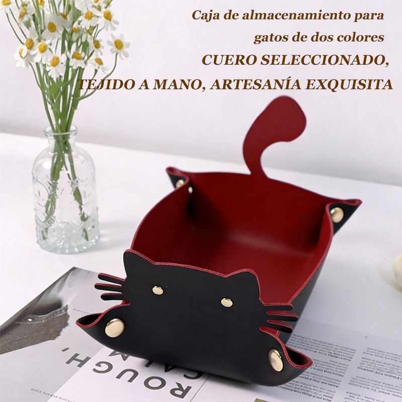 Bandeja Organizadora de Piel Sintética con Diseño de Gato - Decoración para Mesa de Centro o Entrada, Ideal para Llaves y Objetos Pequeños.HOGAWAY