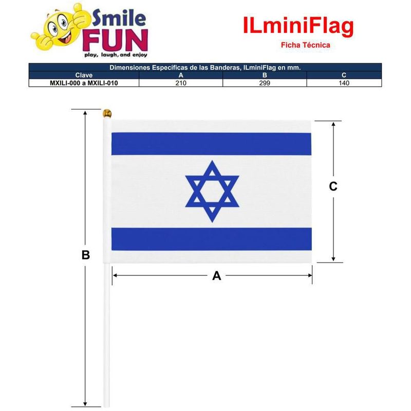 Bandera de Israel ILhandFlag MXILI-000 Mini Bandera Israel Festividad