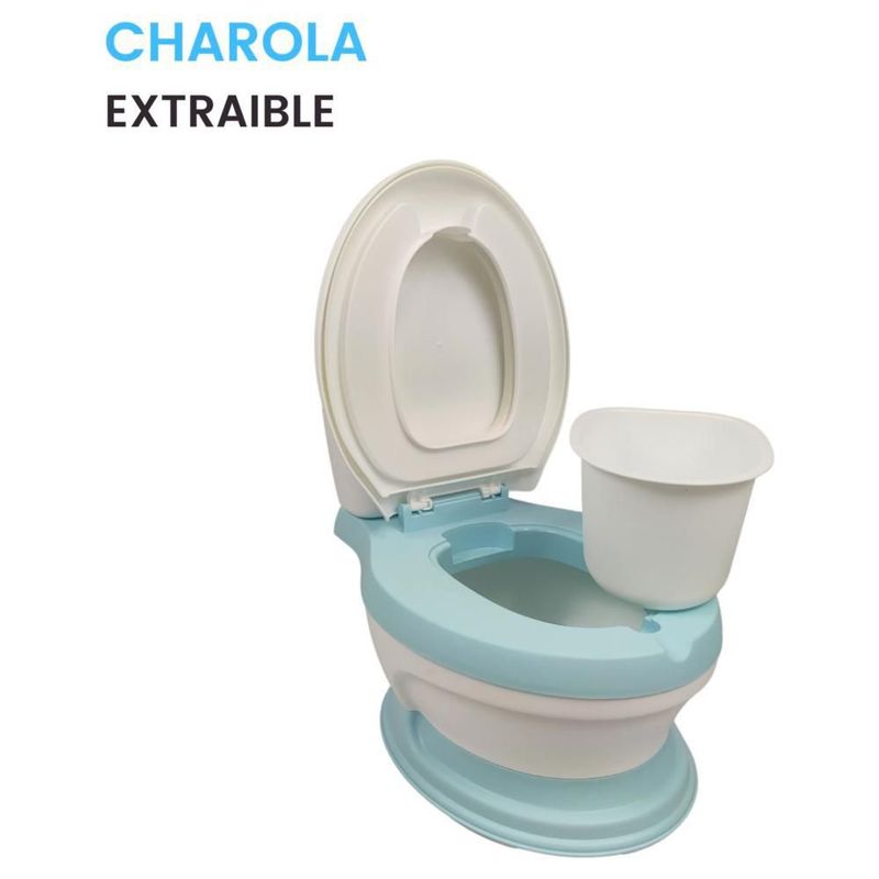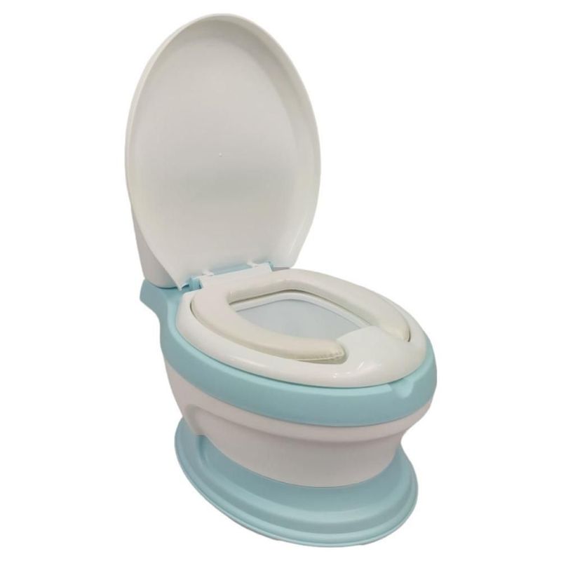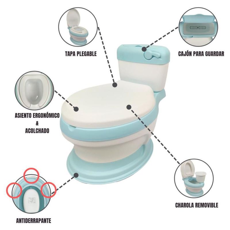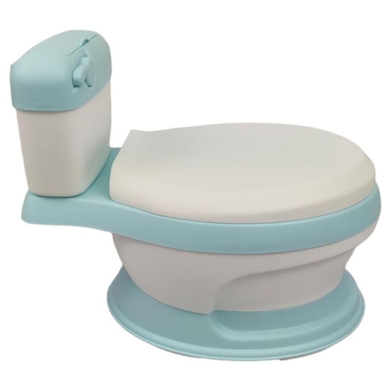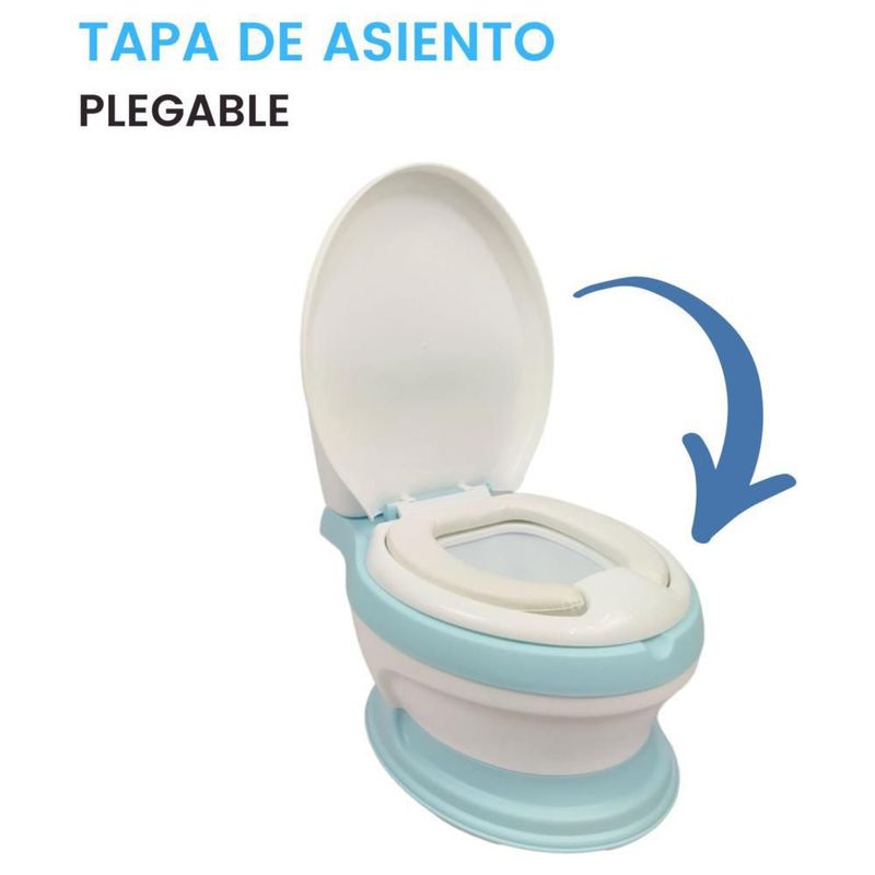 Baño entrenador con asiento acojinado con tapa y recipiente Azul
