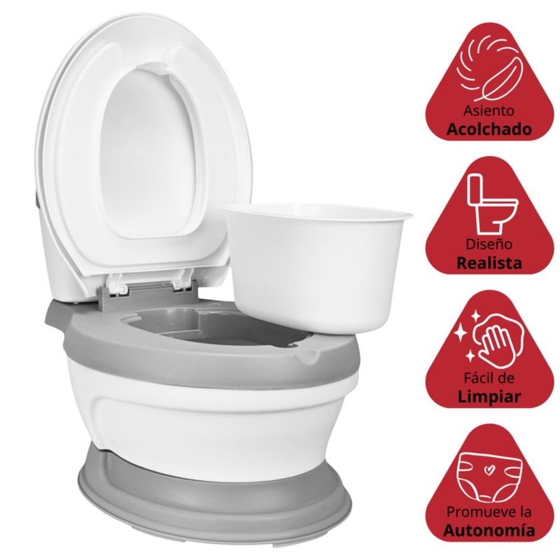 Baño Entrenador para Niños con Asiento Acolchado Diseño Realista Gris