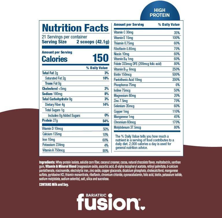 Salud y Equipamiento MédicoFarmaciaVitaminas, Minerales y SuplementosBariatric Fusion Protein Meal Replacement Chocolate 884g Chocolate