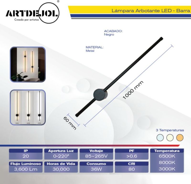 HogarDecoraciónLámparasBarra 3 Temperaturas Negro Metalico