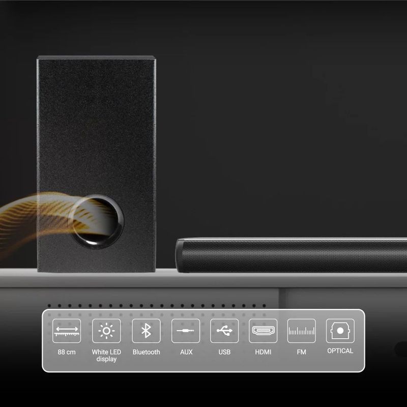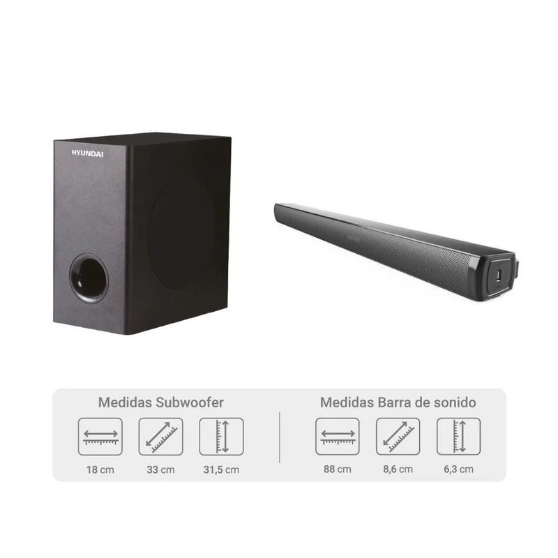 Barra de sonido Hyundai HYSB336W con Subwoofer Inalámbrico Negro