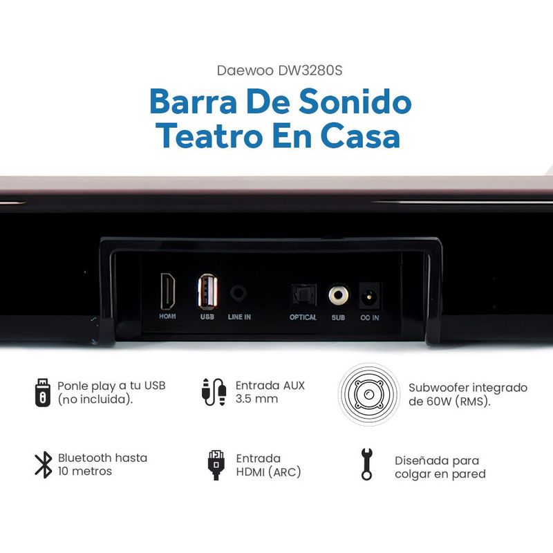 Barra De Sonido Teatro En Casa Con Subwoofer Daewoo Bluetooth 5.1 DW3280S 60w