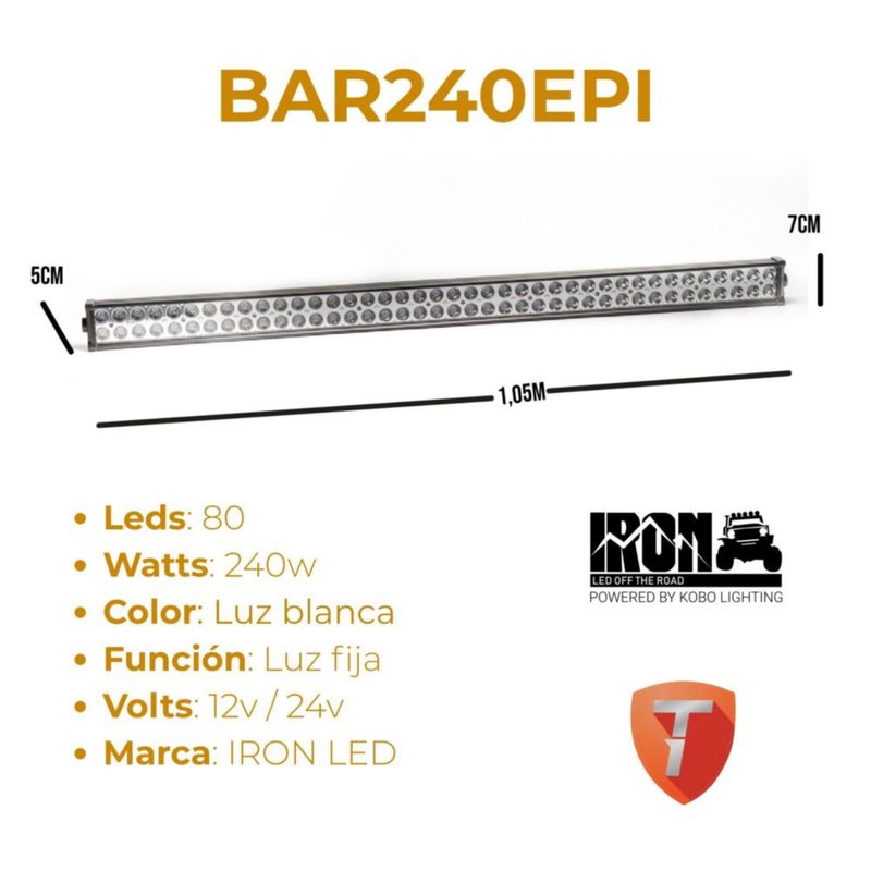 Barra HiperLed IRON LED 80 LED Luz Blanca Fija Auxiliar 240W 12V/24V Universal para Moto, Auto, Camioneta, Camión, Coche, Off Road, 4x4