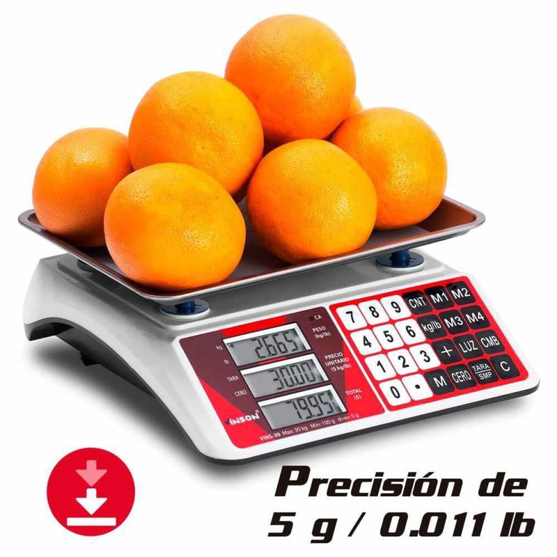 Balanza comercial Vinson, 30 kg, precisión 5 g, batería recargable, conteo de piezas, portátil, VINS-30