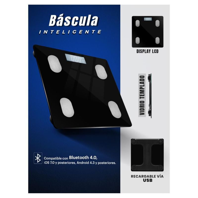 Báscula Inteligente Corporal Inteligente con Bluetooth Color Negro.