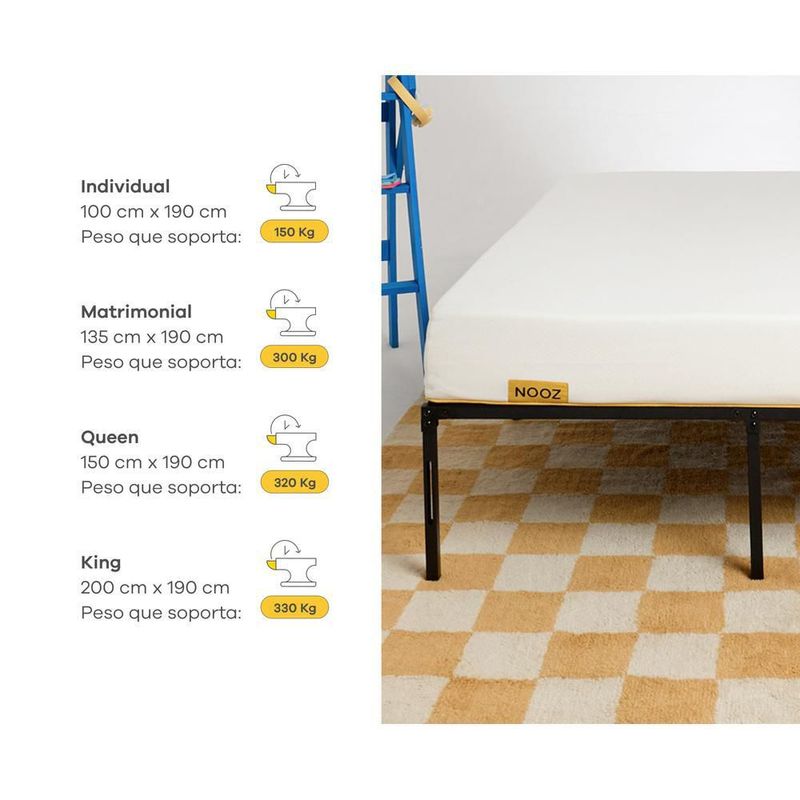 Base de cama individual nooz metálica resistente y ligera