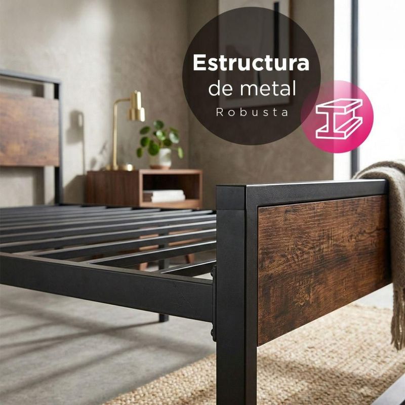 MueblesRecámaraBases de CamaBase De Cama Individual Vanlig Acero Reforzado Con Acabos En Madera Almohadillas Protectoras Diseño Versátil Negro