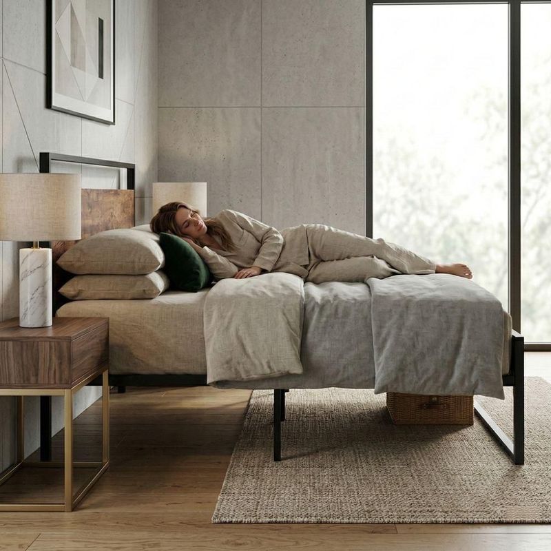 Base De Cama Individual Vanlig Acero Reforzado Con Acabos En Madera Almohadillas Protectoras Diseño Versátil Negro