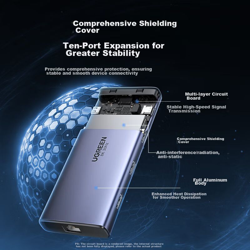 Base De Conexión Usb-C Ugreen Con Doble Hdmi Y Carga Rápida 100W