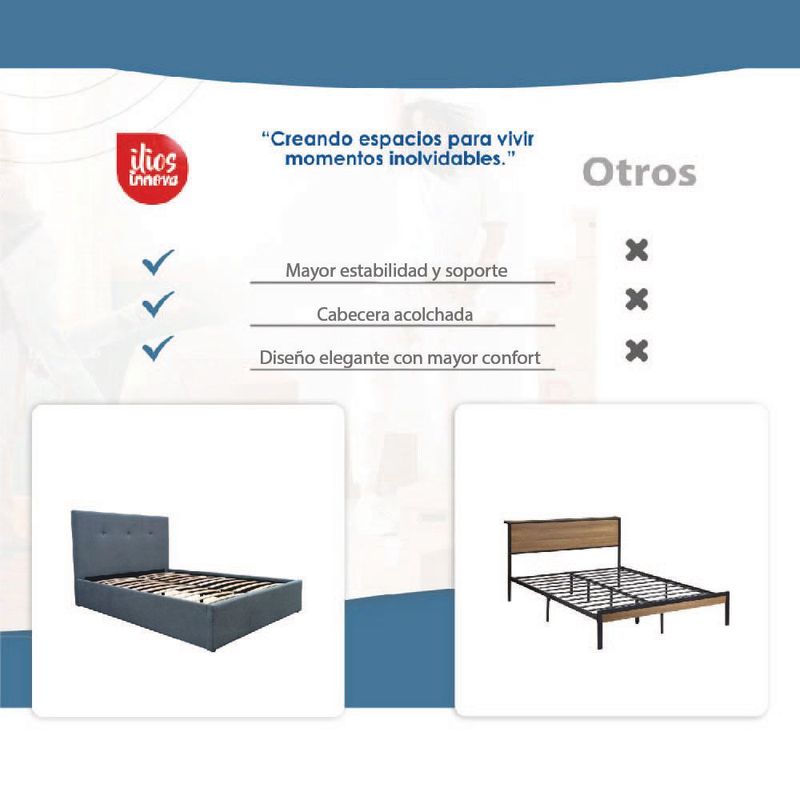 Base Matrimonial Ilios Innova de Madera con Cabecera Color Gris