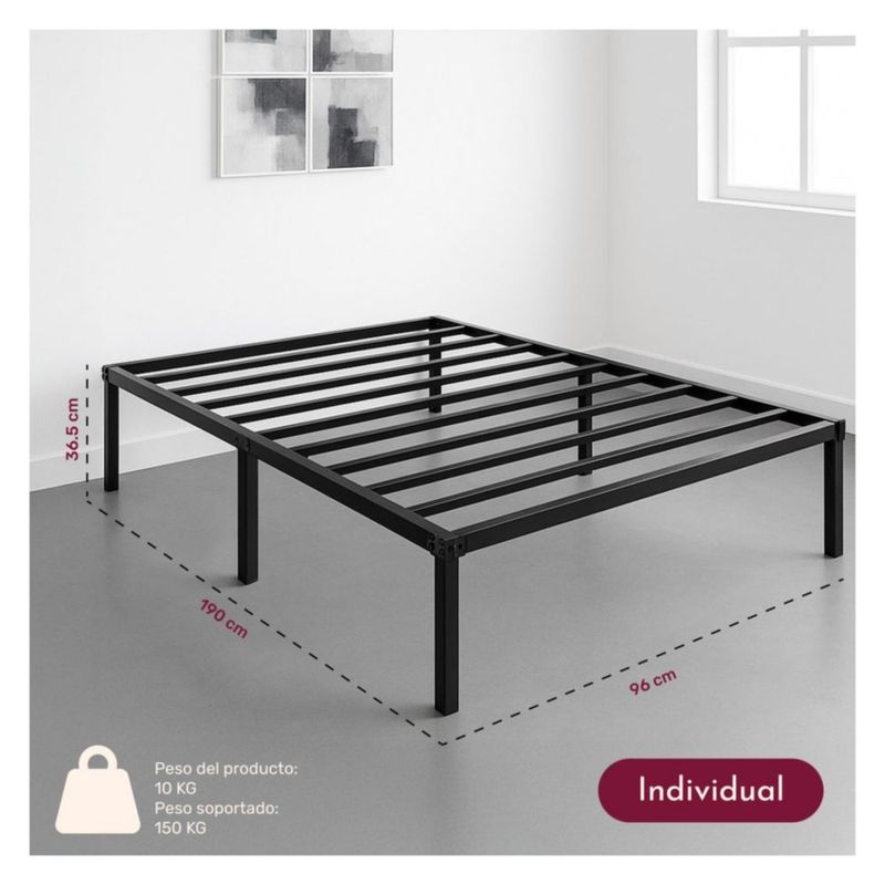 Base para Cama Individual Box Plegable Estructura de Metal Acero Resistente Soporta 150 Kg Houzer