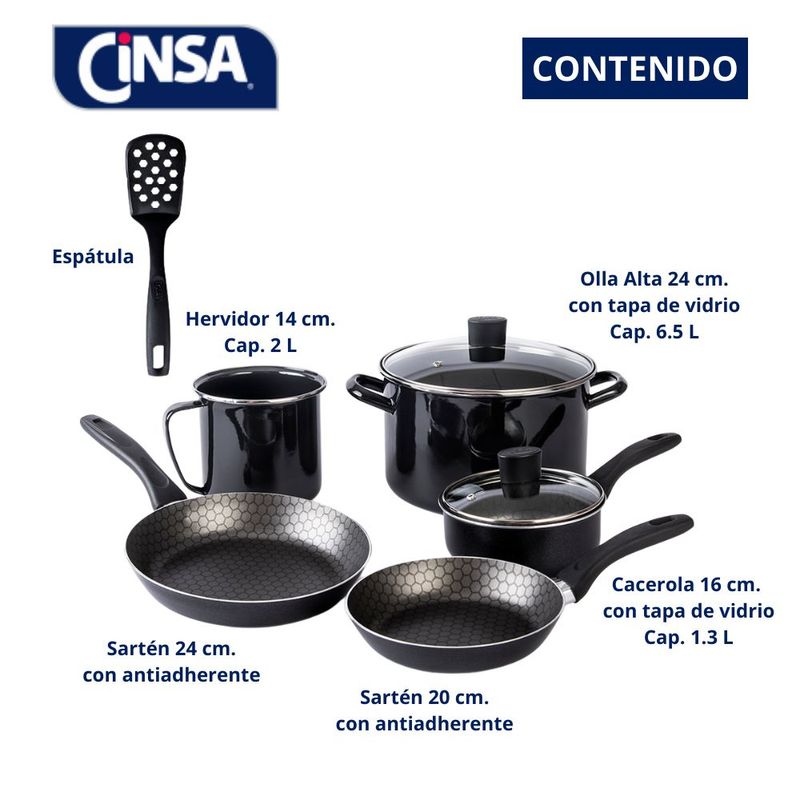 HogarCocinaBaterías de cocinaBatería Cinsa Florida de Aluminio y Acero Vitrificado 8 Pz