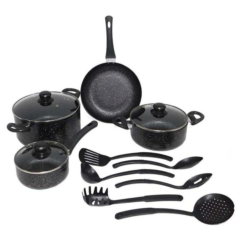 Batería de Cocina Antiadherente con Recubrimiento de Granito 13 pzas