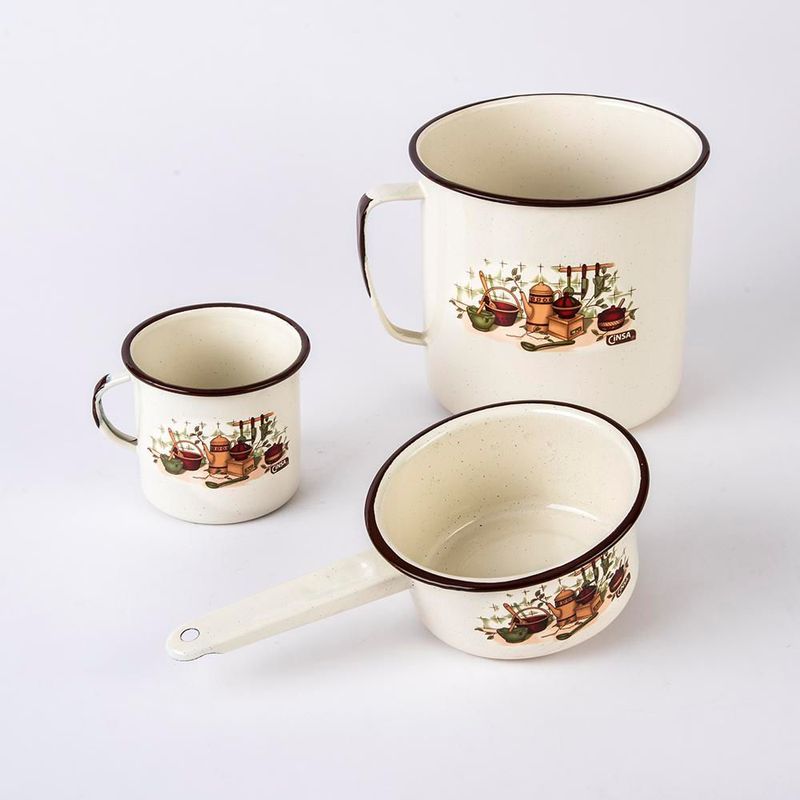 Batería de Cocina Cinsa Armonía de Acero Vitrificado 14 Pz Color Crema