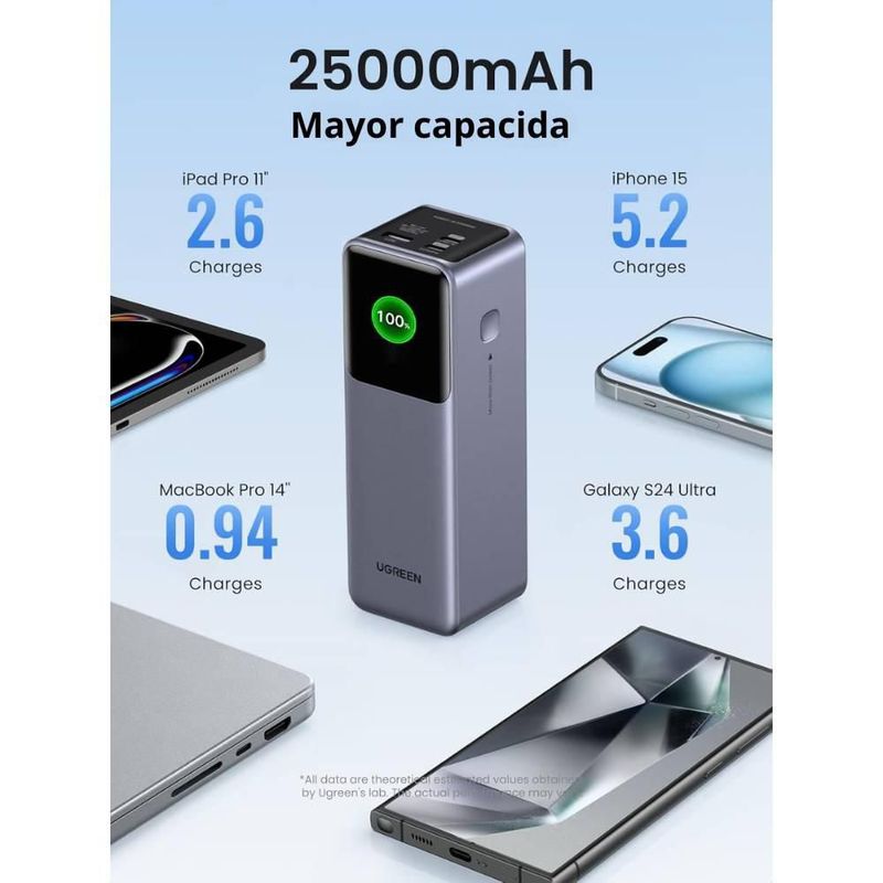 TelefoníaAccesorios para celularesBaterías PortátilesBatería Portatil Nexode 25,000 mAH Ugreen 200W Pantalla digital Gris