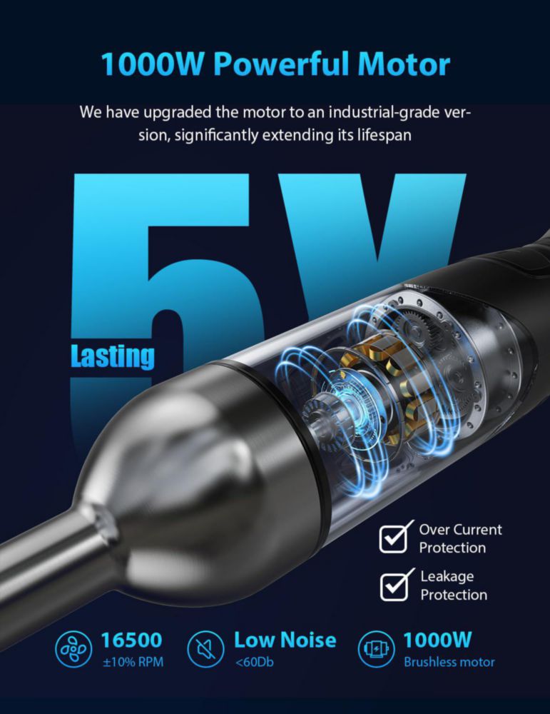 Batidora de inmersión de mano de 1000 W (2025), nueva, de acero inoxidable, con 25 velocidades, con cable, motor de cobre sin es