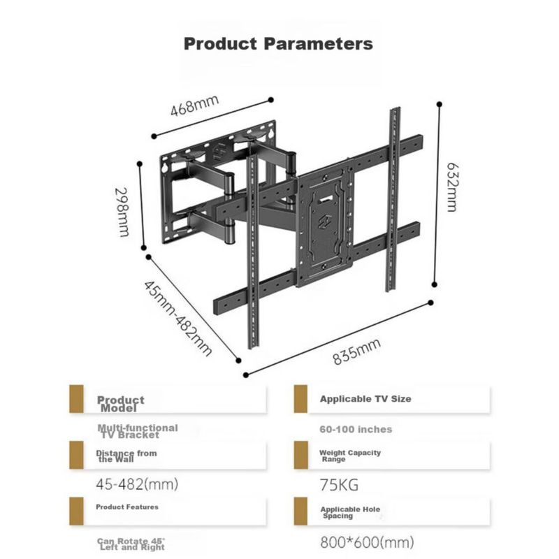 ElectrónicaAccesorios para electrónicaSoportesBehind the Scenes Hero Soporte de pared para TV 50-100" ajustable y giratorio, acero reforzado, capacidad 75 kg, compatible Hisense/TCL/Leiniao/Xiaomi