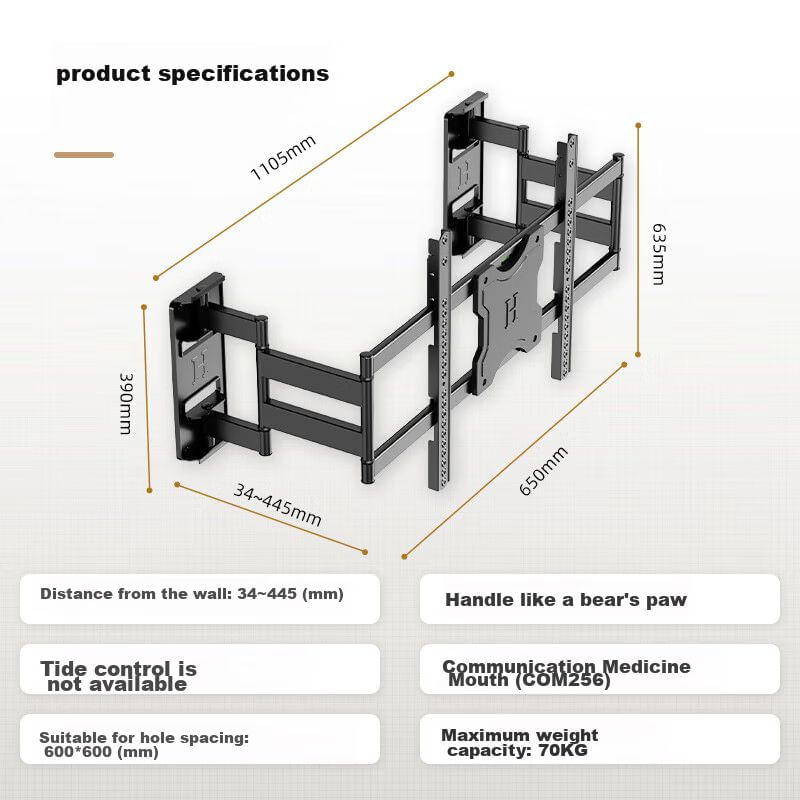 ElectrónicaAccesorios para electrónicaSoportesBeishi Soporte para TV 55"-90" brazo extensible, giratorio, compatible Hisense/TCL/Leiniao/Huawei/Sony/Philips/Samsung