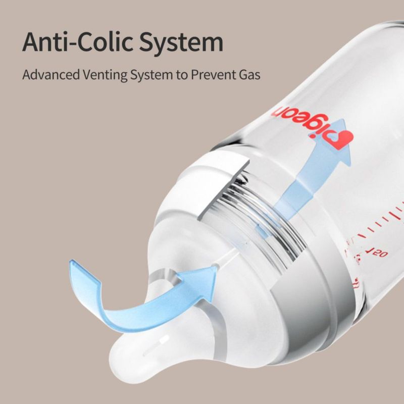 Biberón de vidrio para lactancia PIGEON cuello ancho 160 ml anticólico (x2)